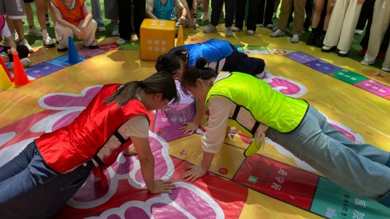 为加强对彼此的认识,使不同部门的小伙伴从陌生到熟悉,从个体到团队的迅速融合,教练将百余名新员工分成八队,以团队形式开始“超级大富翁”游戏活动。团队成员们聚在一起,共同讨论策略、分工合作,掷出最好的点数,完成各种任务和挑战,最终成为“大富翁”!活动中呼喊声、笑声此起彼伏,现场情绪热烈,气氛高涨。