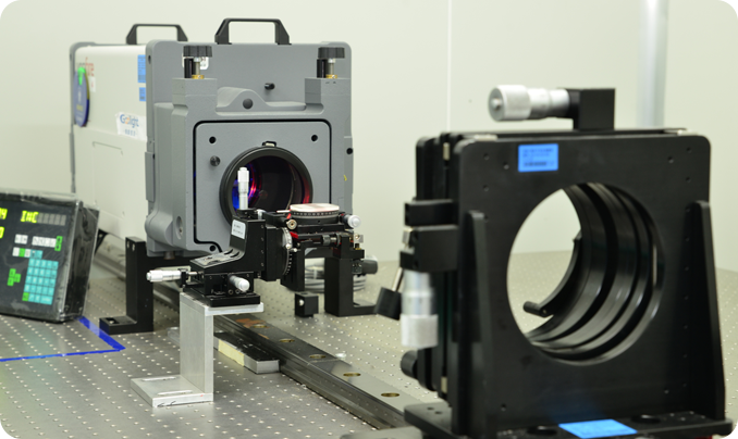 由各种光学检测设备组成的测试平台,平台由进口激光干涉仪、白光干涉